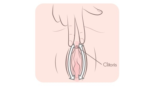 تطبيق هذه التقنية بسيط للغاية، كل ما عليكِ فعله هو ضم أصابعكِ الأربعة معًا وتحريكها على المهبل بحركة دائرية كما هو موضح أعلاه.