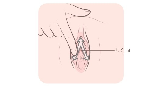 لتحفيزها، ما عليكِ سوى تمرير طرف إصبعكِ عليها برفق كما هو موضح في الرسم التوضيحي أدناه. بينما يُعدّ تدليك نقطة يو فقط ممتعًا للغاية، إلا أن تقنية استمناء أفضل هي التدليك بلطف من نقطة يو وصولًا إلى البظر ثم العودة إلى أسفل (كما هو موضح في الرسم التوضيحي أدناه).